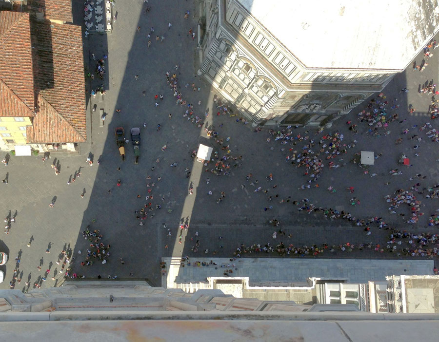 Aerial view of the center of Florences' large new pedestrian zone - click to enlarge
